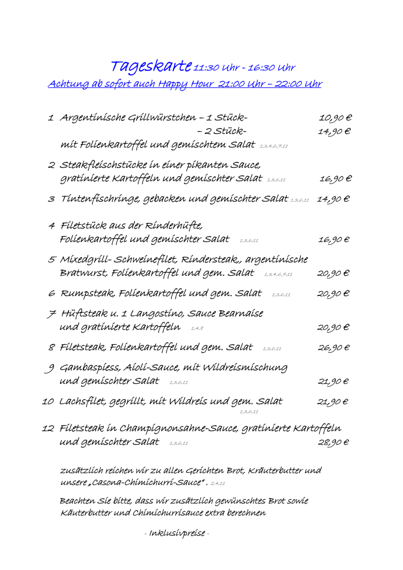 Hauptstraße 456,51143 Köln Telefon: 02203 55765 Öffnungszeiten:Montag - Sonntag:11:30 - 22:30 Uhr(Küche bis 22:00)